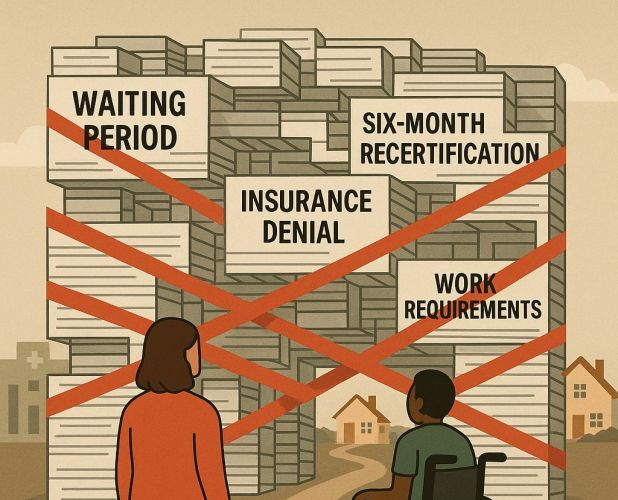 The fallout from the Big Not-So-Beautiful Bill includes work requirements and increased reporting for people receiving Medicaid. Technically, people with disabilities are supposed to be exempt from these requirements, but the burden of paperwork needed as proof of disability Is a perfect example of government creating a roadblock. Now, every six months people will have to re-prove that they qualify for Medicaid by supplying even more paperwork. Many people will lose Medicaid coverage, since getting (and keeping) all of the proper paperwork in order is becoming more and more of an ordeal. We know this because several states already tried using work requirements for Medicaid, and a lot of people lost their enrollment by not responding to requests for more documentation. A recent study by the Blue Cross Blue Shield Massachusetts Foundation and The Urban Institute found that these changes will likely result in approximately 200,000 MassHealth members losing their healthcare coverage.