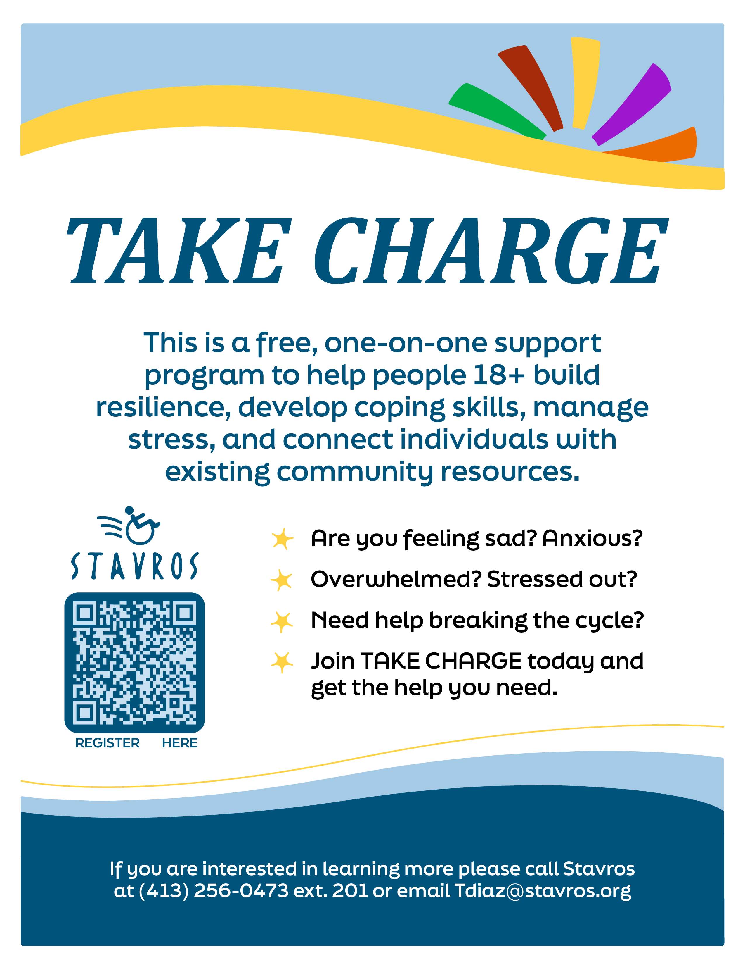 Life can be hard. Sometimes stress, anxiety, or the weight of everyday challenges can feel impossible to manage alone. The TAKE CHARGE program at Stavros is here to help you find your balance again.